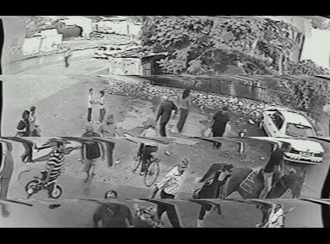Parmi les films à partir de caméras de surveillance nous avons Un Unusual Summer de Kamal Aljafari (Palestine 2020, 80min.) L’« intrigue » ? Savoir qui a brisé la vitre de la voiture du père. Mais ce n’est que le prétexte. Les images d’une caméra de surveillance installée par le père, donnant sur un parking, entrecoupées de cartons avec des questions que le personnage/narrateur/réalisateur se pose ou des réflexions ou commentaires sur ce qu’on voit, passent en accéléré, parfois en arrière, entrecoupées aussi d’écrans plus ou moins noirs ou de couleurs différentes. Parfois avec l’indication de la date (juillet 2006) et de l’heure.La présence de la guerre se signale par des éclairs dans le ciel.